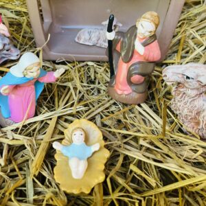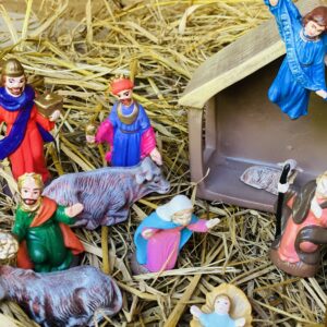 Beautifully detailed nativity scene with vibrant Christmas colours