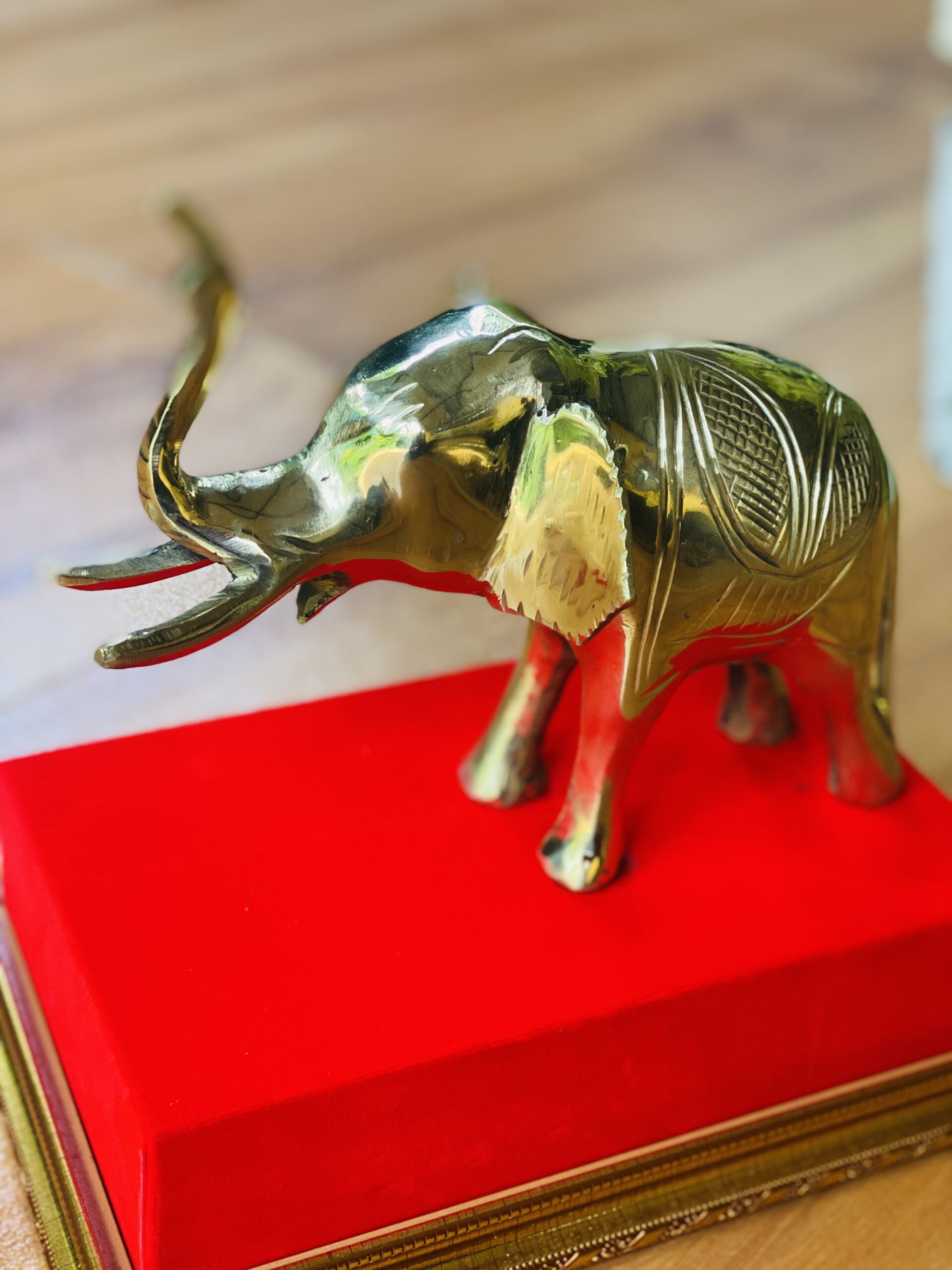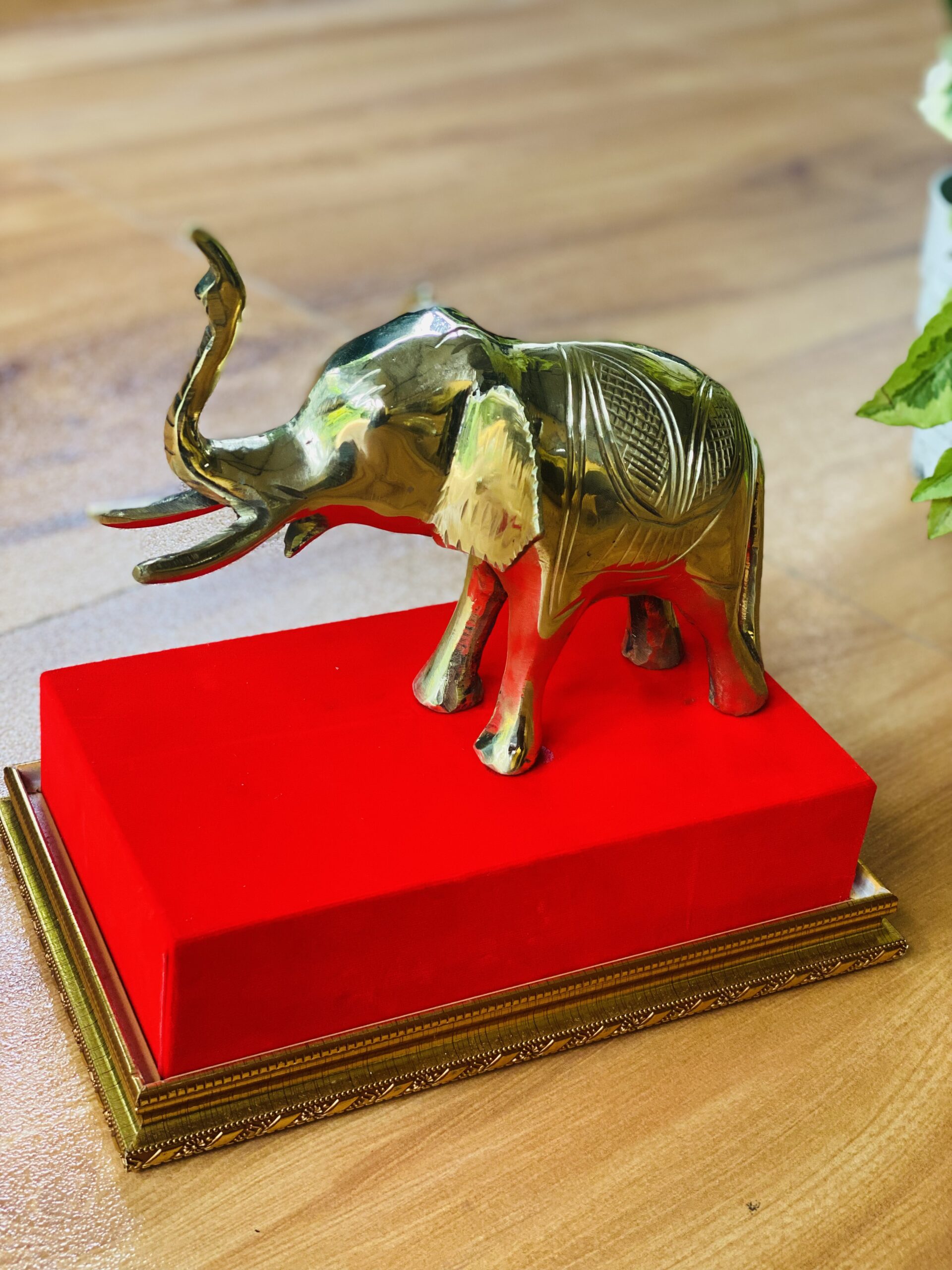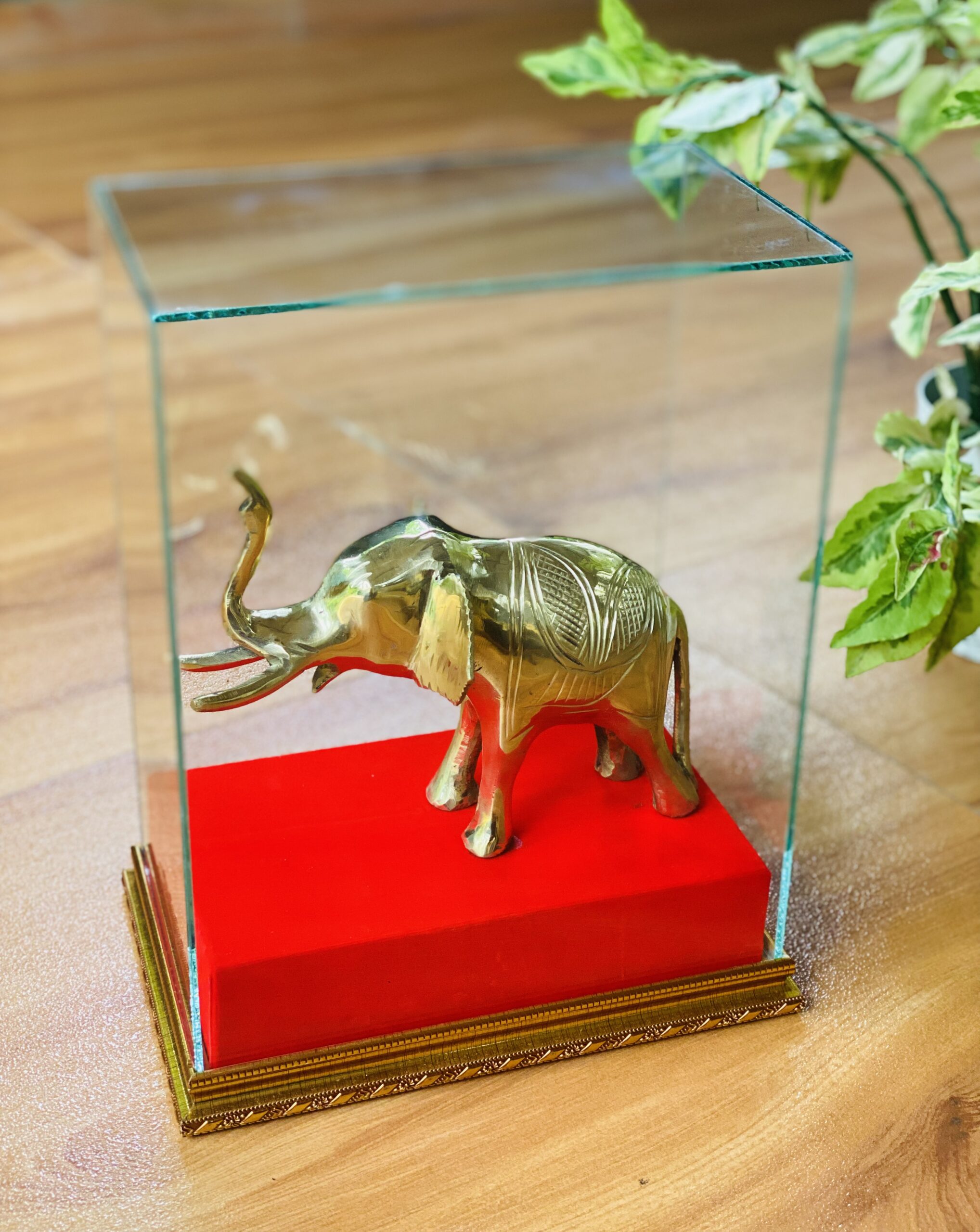 This elegant Brass Elephant Ornament is beautifully presented on a premium glass display box, making it a perfect décor piece or gift for any occasion. The brass elephant symbolises strength, wisdom, and prosperity, making it an ideal choice for homes, offices, or as a gift.
