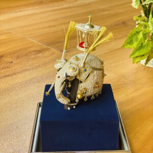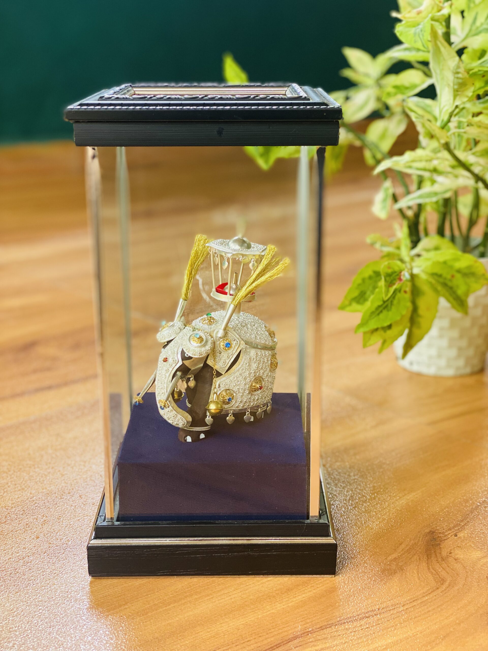 This beautifully crafted Silver Elephant Statue (medium size) is elegantly presented inside a premium glass display box, making it a striking and timeless décor piece. The elephant symbolizes strength, wisdom, and prosperity, while the glass enclosure keeps it protected from dust and damage. Perfect for homes, offices, or as a thoughtful gift.