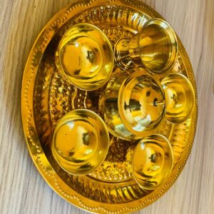 Brass: The set is made from polished brass, giving it a golden look that fits traditional worship aesthetics.