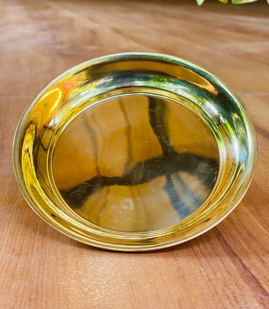 Crafted from high-quality brass, this Small Plain Tray features a smooth surface with a classic golden finish that reflects timeless simplicity and traditional craftsmanship. Its compact 6-inch size makes it ideal for pooja rituals, holding flowers, kumkum, oil lamps, or incense.