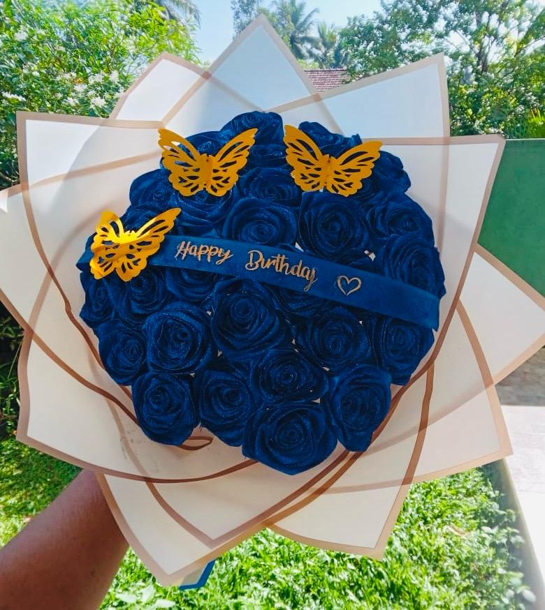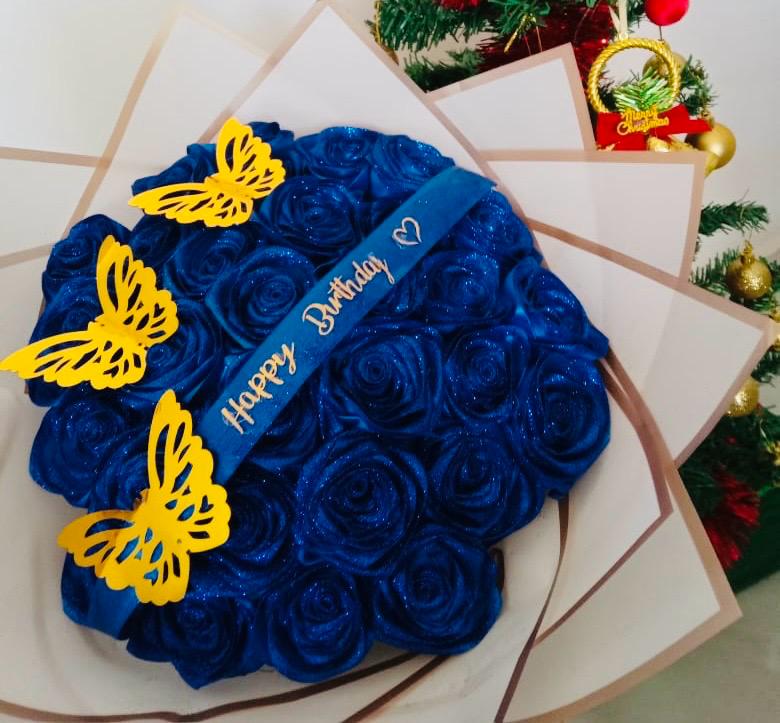 This spectacular Glitter Flower Bouquet features 30 royal blue ribbon flowers with a shimmering glitter finish, creating a vibrant and luxurious display. The bouquet comes with a celebratory tag, perfect for sending heartfelt messages and adding a personalized touch.